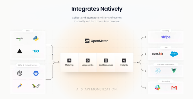 OpenMeter is an Open Source Usage-Based Billing solution for AI/Cloud applications. It integrates with Stripe for easy billing.